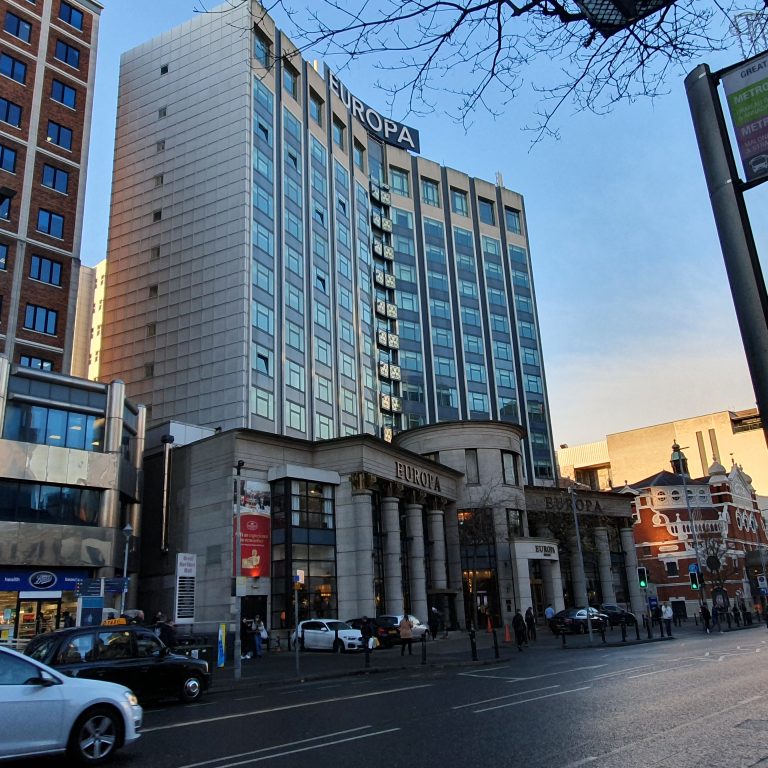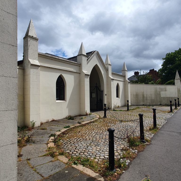 The National Bank was founded in 1835 by Daniel O’Connell. The High Street branch was built in the early 1890s and is built in the Baroque revival style.[1] It features red and white brick façade features pilasters with Corinthian capitals,…