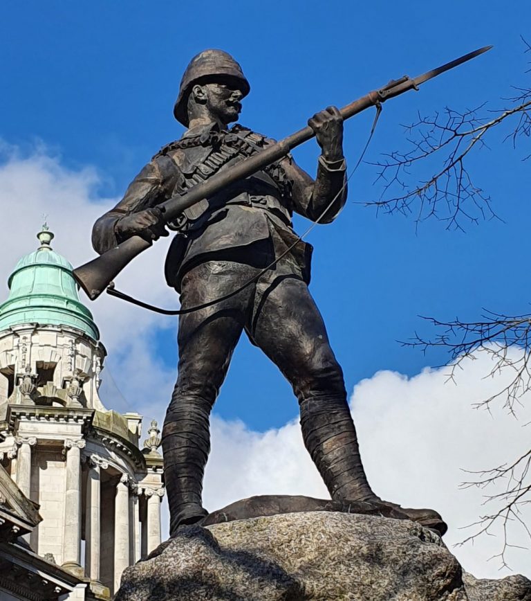 The Belfast Boer War Memorial takes the form of a statue of a private of the Regiment in khaki uniform, with topee and puttees, with a rifle and fixed bayonet at the ready. It lists 130 names of the officers,…