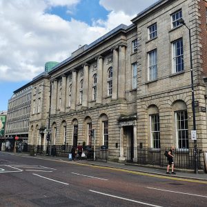 Commercial Buildings were built in 1819/20 a commercial hotel, spacious and handsome news-room and ‘piazza for the use of merchants’.[1] The building was used to house the printing press of the Northern Whig newspapers until since 1922.[2] The building was…