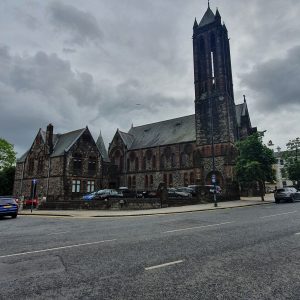 The church was built in 1887 as a Presbyterian church. It was designed by architect John Bennie Wilson. Do you want to learn more about the history of Belfast? We pass this site on my Queen’s Quarter Tour!