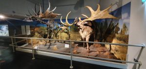 This is a skeleton of a male Giant Deer that roamed Ireland during the last ice age, several tens of thousands of years ago, and a full life-size model of what the creature is thought to have looked like. The…