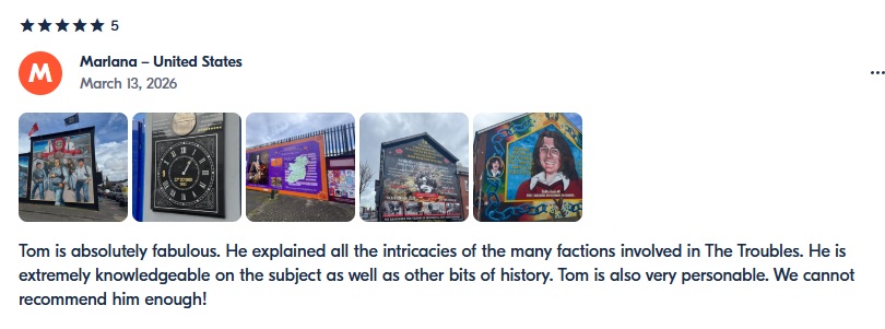 The review below was in an email given by Jan and his family from the Netherlands doing a Troubles Tour in October 2025.